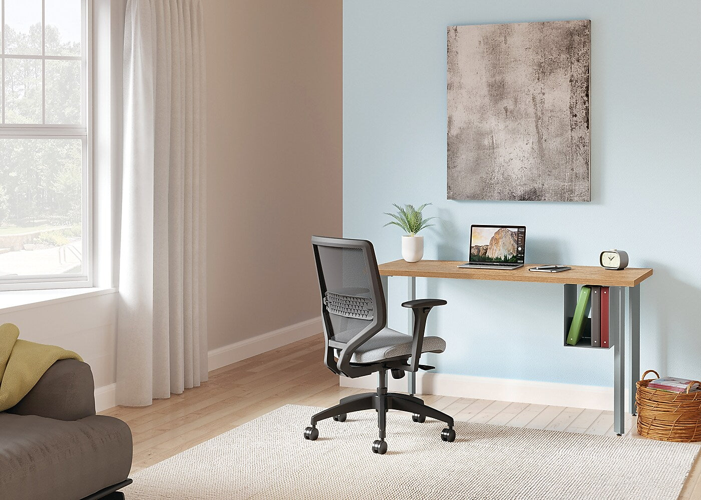 HON Coze Table Desk | 54"W x 24"D | Natural Recon Laminate | Silver Leg Finish | U-Storage Included