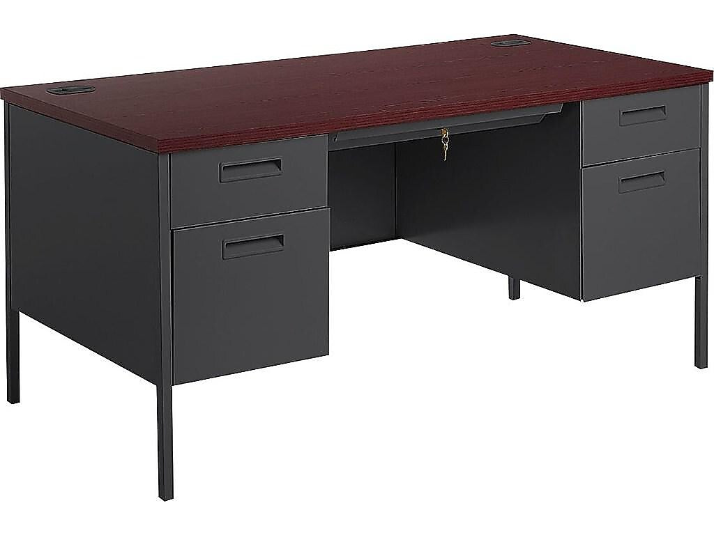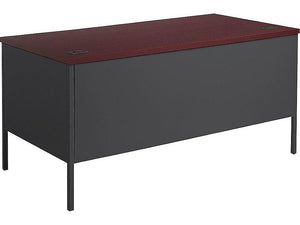 Enjoy ample workspace and storage with this 60-inch pedestal desk. The mahogany laminate surface resists stains and scratches for durability under everyday wear and tear, and a universal lock conveniently secures all drawers with a single key turn. This charcoal-finish HON Metro Classic desk contains two box and two file drawers, plus rear and side modesty panels for added privacy.