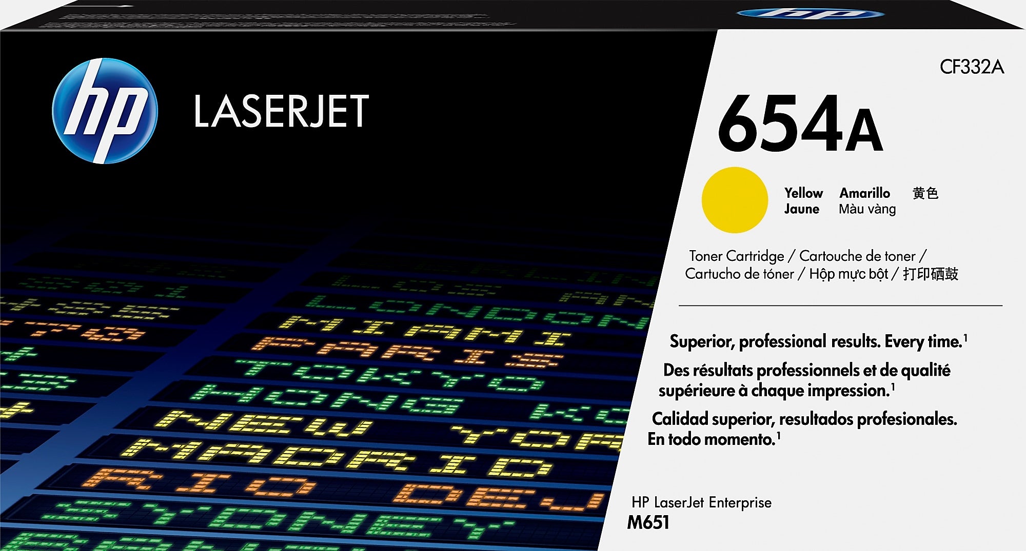 - What's in the box: 1 new Original HP 654A Yellow Standard Yield Toner Cartridge (CF332A)