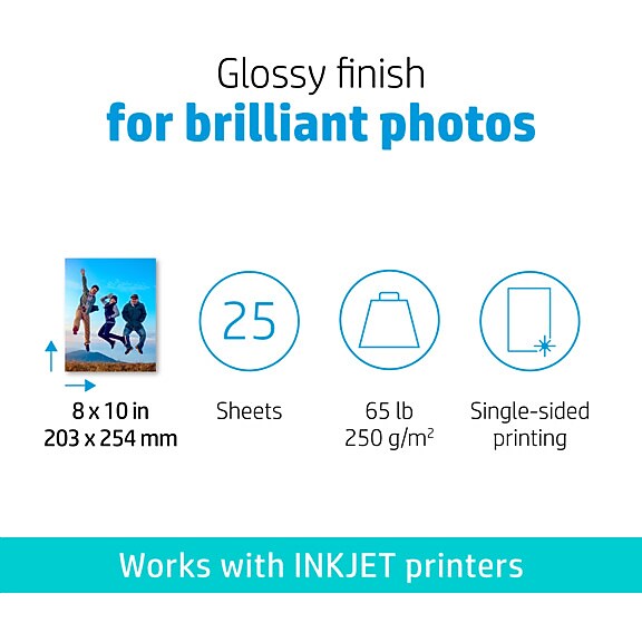 HP Advanced Photo Paper, Glossy, 8" x 10", 25 Sheets/Pack (6J777A)