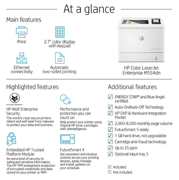 HP Color LaserJet Enterprise M554dn Printer (7ZU81A#BGJ)
