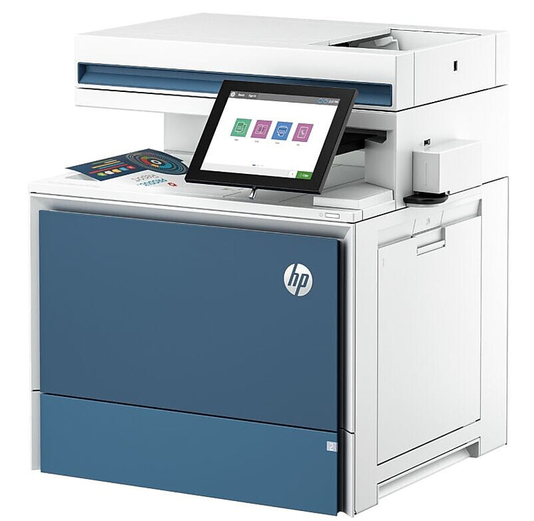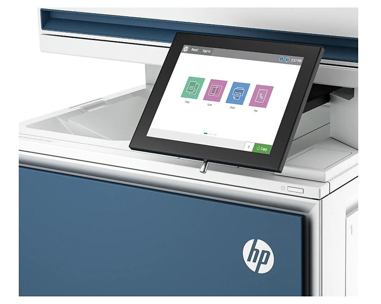 - Auto duplex printing; 2 paper trays (standard); 100-sheet ADF; 8-in color touchscreen, HP Wolf Security
