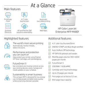 HP LaserJet Enterprise MFP M480f Color All-in-One Laser Printer, Print, Scan, Copy, Best for Office (3QA55A)