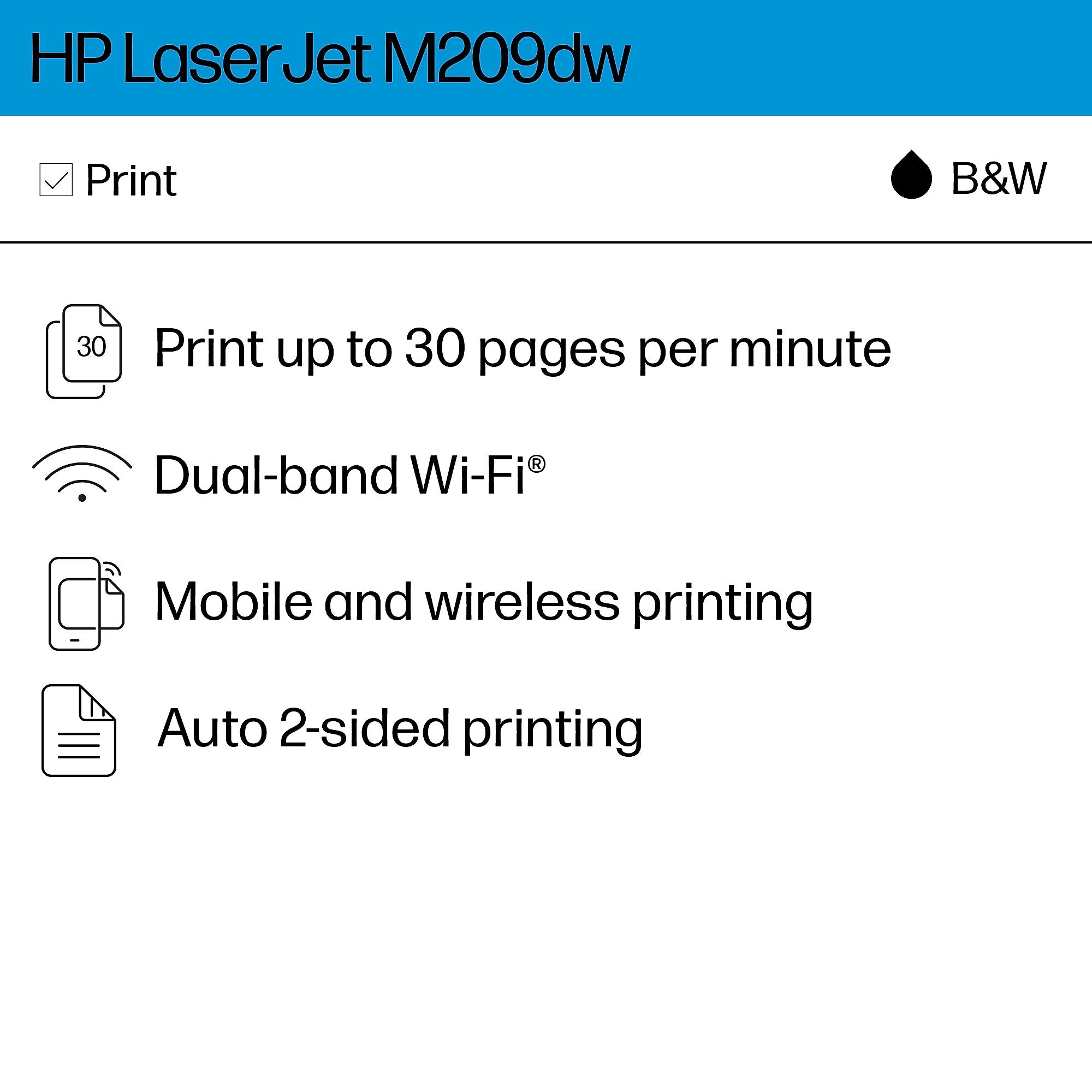 HP LaserJet M209dw Wireless Black & White Laser Printer, Single-Function, Print, Best for Home Office (6GW62F)