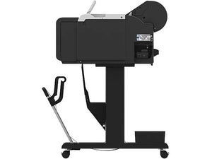 - Includes: printer, stand with flat stacking basket, starter ink tanks 90mL BK/C/M/Y and 130mL MBK), one printhead, maintenance cartridge (installed), 2" roll holder, installation guide, user registration card, call center notice, media compatibility flyer, PosterArtist web notice flyer, safety and environmental information, iWR Service Terms Leaflet, power cable, and screw
