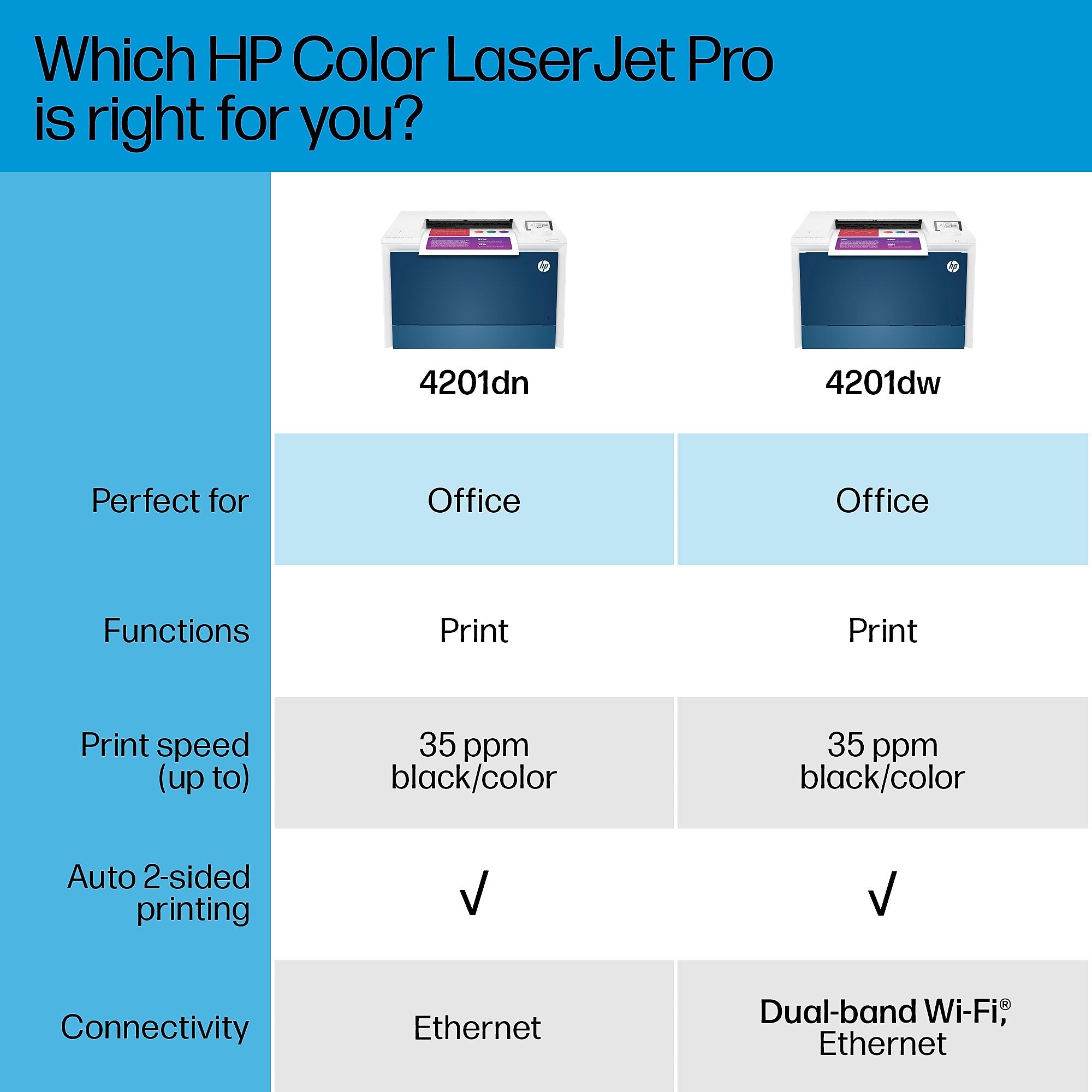 HP LaserJet Pro 4201dw Wireless Color Laser Printer, Print Only, Best for Office (4RA86F)