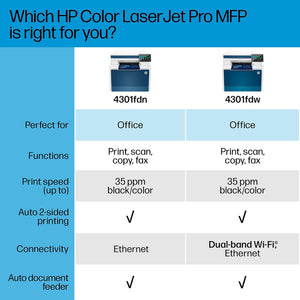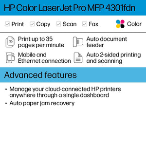HP LaserJet Pro MFP 4301fdn Color All-In-One Laser Printer, Print, Scan, Copy, Fax, Best for Office (4RA81F)