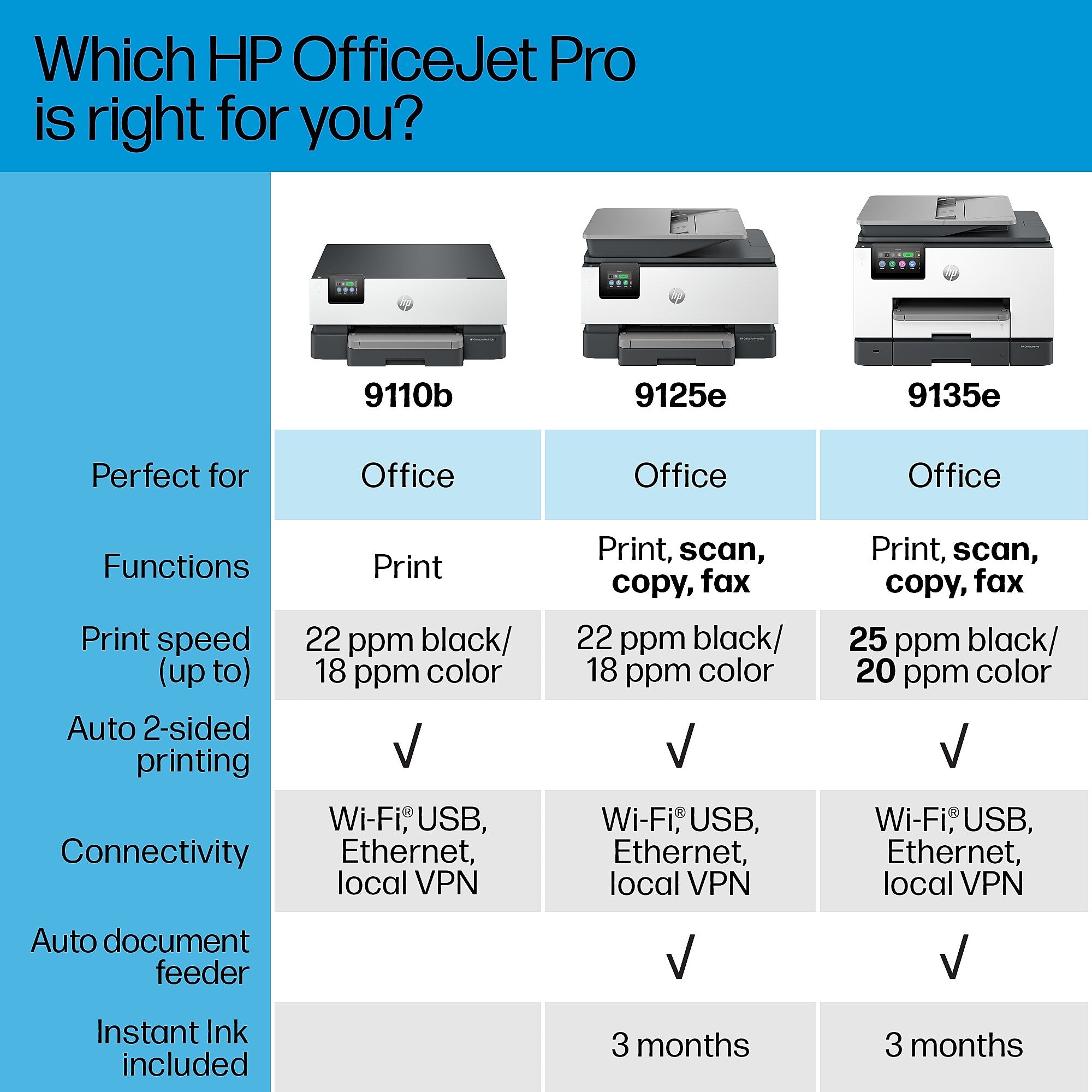 View Details- FROM AMERICA'S MOST TRUSTED PRINTER BRAND – The OfficeJet Pro 9110b is perfect for offices printing professional-quality color documents like presentations, brochures and flyers. Print speeds up to 18 ppm color, 22 ppm black. Great for remote teams.