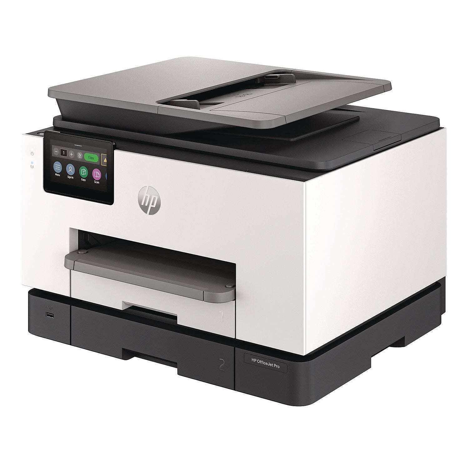 With the HP OfficeJet Pro 9130b All in One Printer you can easily deploy, integrate, and set up your fleet of printers with the Page Description Language support and HP Universal Print Driver. Plus, stay in control and customize each printer according to your company's guidelines with customizable functions. Always ready for high volumes, get an HP OfficeJet Pro printer equipped with two 250-page input trays.