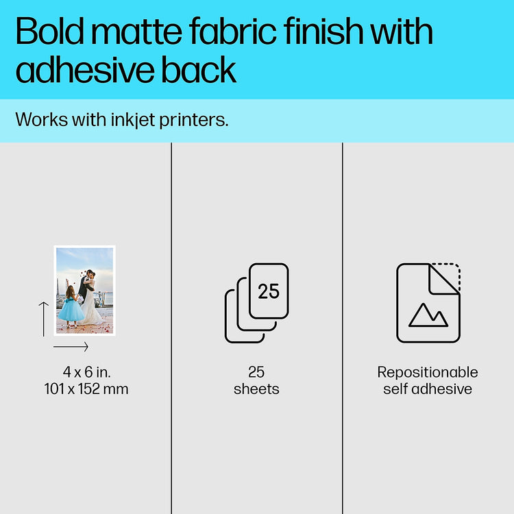 View Details- Use this elegant self-adhesive matte fabric sticker to print your photos or artwork