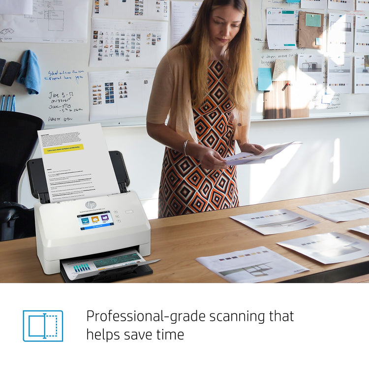 Give your office high-volume scanning performance with this HP ScanJet Enterprise Flow desktop scanner. HP Scan Premium helps you save time and capture confidently. Achieve black-and-white scan speeds up to 75 ppm/150 ipm. Recommended for 7500 pages per day.