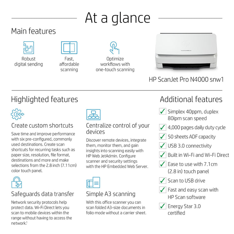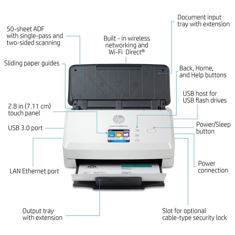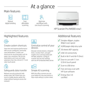 HP Scanjet Pro N4000 Snw1 Duplex Desktop Document Scanner, White (6FW08A#BGJ)