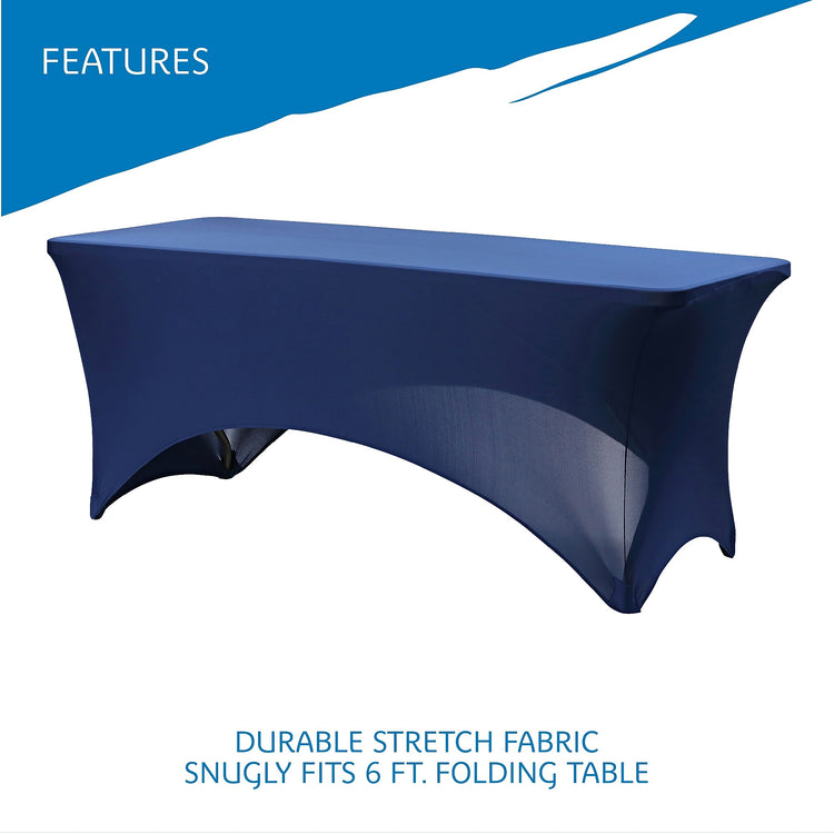 - Stretchable to snuggly fit 72" x 30" folding tables