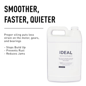 ideal. shredder oil is a specially blended, non-toxic, high-cling, non-detergent oil formulated exclusively for ideal. shredders. It is recommended that shredder blades be oiled for every 30 minutes of operation for cross-cut shredders, and for every hour of operation for strip-cut models. Oil helps your shredder run smoother, faster, and quieter, and puts less strain on the motor, gears, and bearings.