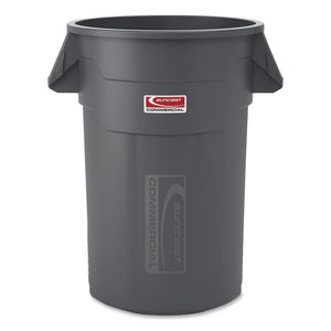 The Suncast Commercial® injection molded utility trash can is manufactured to last longer and be more durable than competing cans. This trash can will not rust and is resistant to denting and bending. The vented channels aid in reducing the force required to remove a filled can liner, while the side handles allow for an effortless lifting and easy transportation.