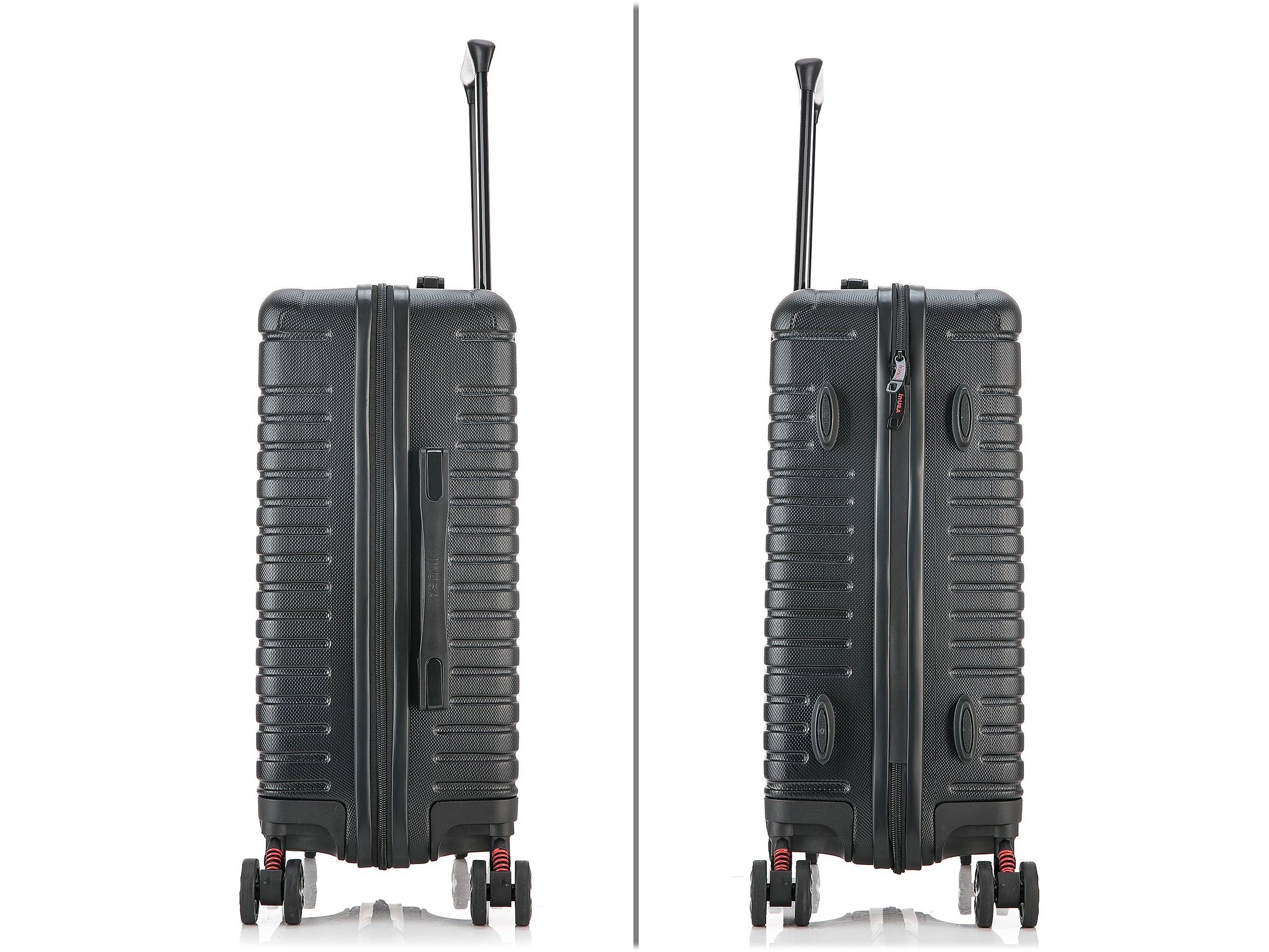 The InUSA Deep 20" carry-on luggage features a contemporary, impact-resistant, and functional design. The suitcase is made of engineered material with a micro-diamond finish. The hard-flex construction offers maximum strength, durability, and a water-/scratch-resistant finish. Top and side ergonomic gel handles ensure comfortable and easy luggage lifting. It comes equipped with a push-button locking internal retractable trolley system. Features smooth-gliding self-repairable oversized zippers.