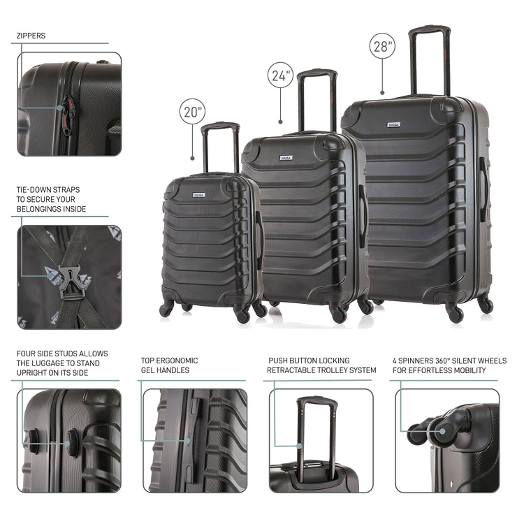 InUSA Endurance 3-Piece Hardside Spinner Carry-On Luggage Set, TSA Checkpoint Friendly, Black (IUENDSML-BLK)