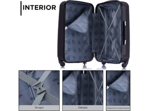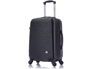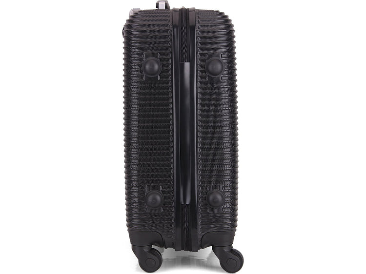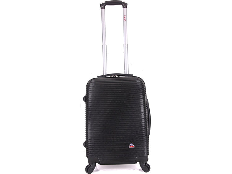 The InUSA Royal 20"H carry-on luggage spinner features a contemporary, impact-resistant, functional design. The suitcase is made of engineered material with a micro diamond finish. Ergonomic top and side gel handles ensure comfortable and easy luggage lifting. Equipped with push-button locking internal retractable trolley system. Suitable for most major airlines.