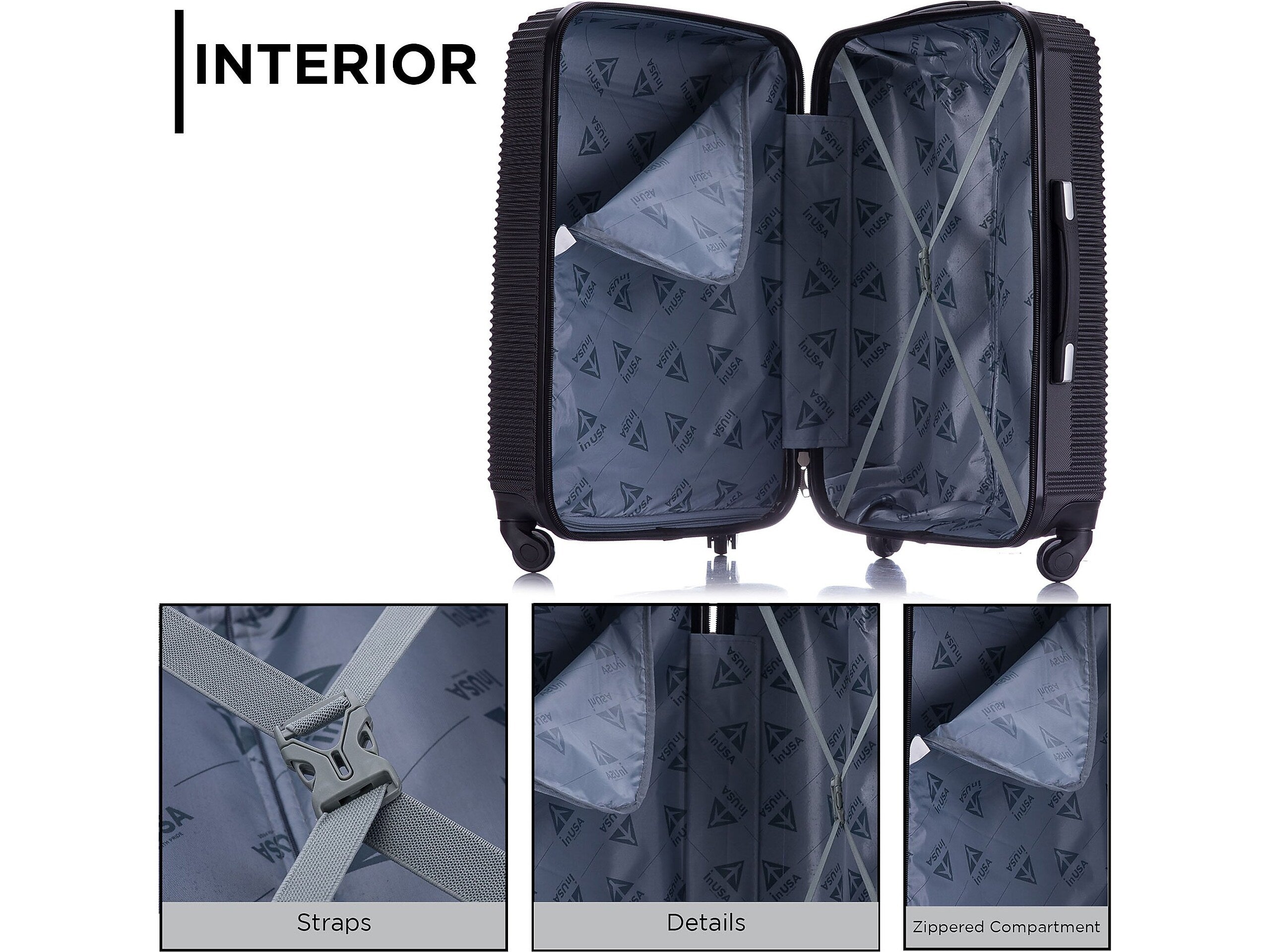 InUSA Royal 20" Hardside Carry-On Suitcase, 4-Wheeled Spinner, TSA Checkpoint Friendly, Black (IUROY00S-BLK)