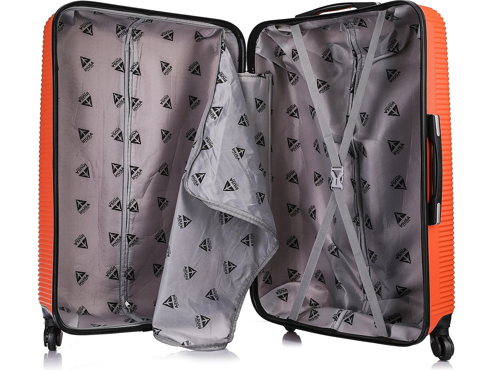 The InUSA Royal Extra Large luggage spinner features a contemporary, impact-resistant, and functional design. The suitcase is made of engineered material with a micro diamond finish. Top and side ergonomic gel handles ensure comfortable and easy luggage lifting. It comes equipped with a push-button locking internal retractable trolley system. Suitable for most major airlines.