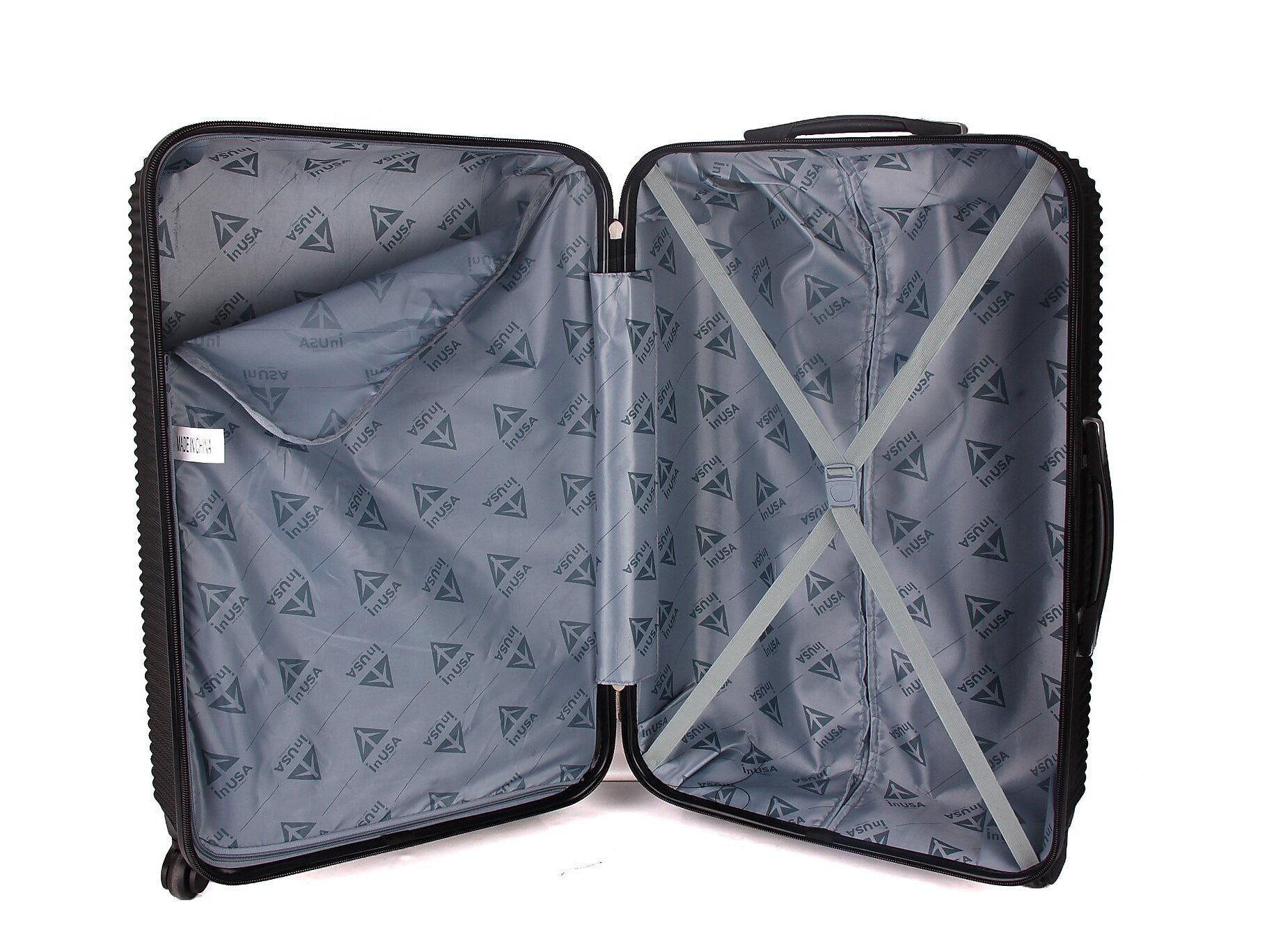 Features contemporary, impact-resistant, functional design. Made of engineered material with micro diamond finish. Full interior lining. Four multidirectional 360-degree silent spinner wheels for effortless mobility. Push-button locking internal retractable trolley system. the InUSA Royal luggage set has ergonomic top and side gel handles for comfortable and easy lifting. Tie-down straps to secure your belongings inside. Four side studs allow the luggage to stand upright on its side. Suitable for most major airlines.