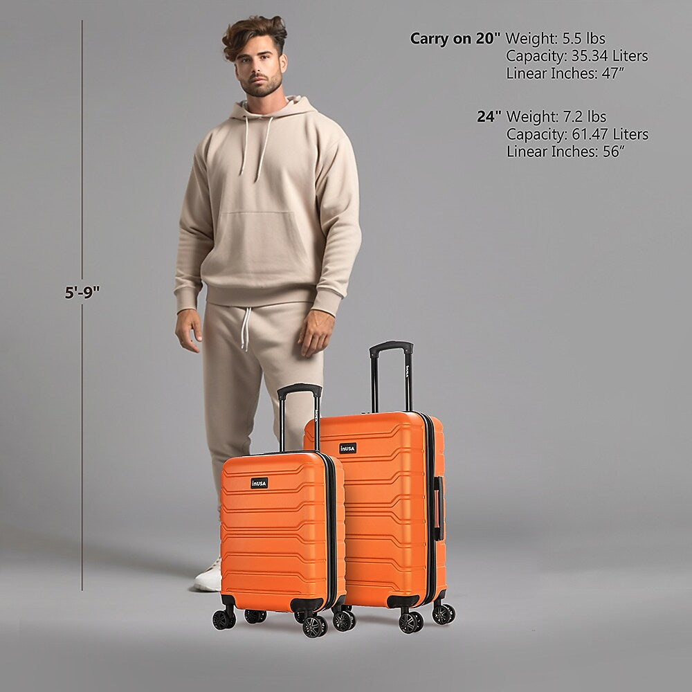 InUSA Trend lightweight hardside spinner 2 Piece Luggage Set 20" & 24" Orange