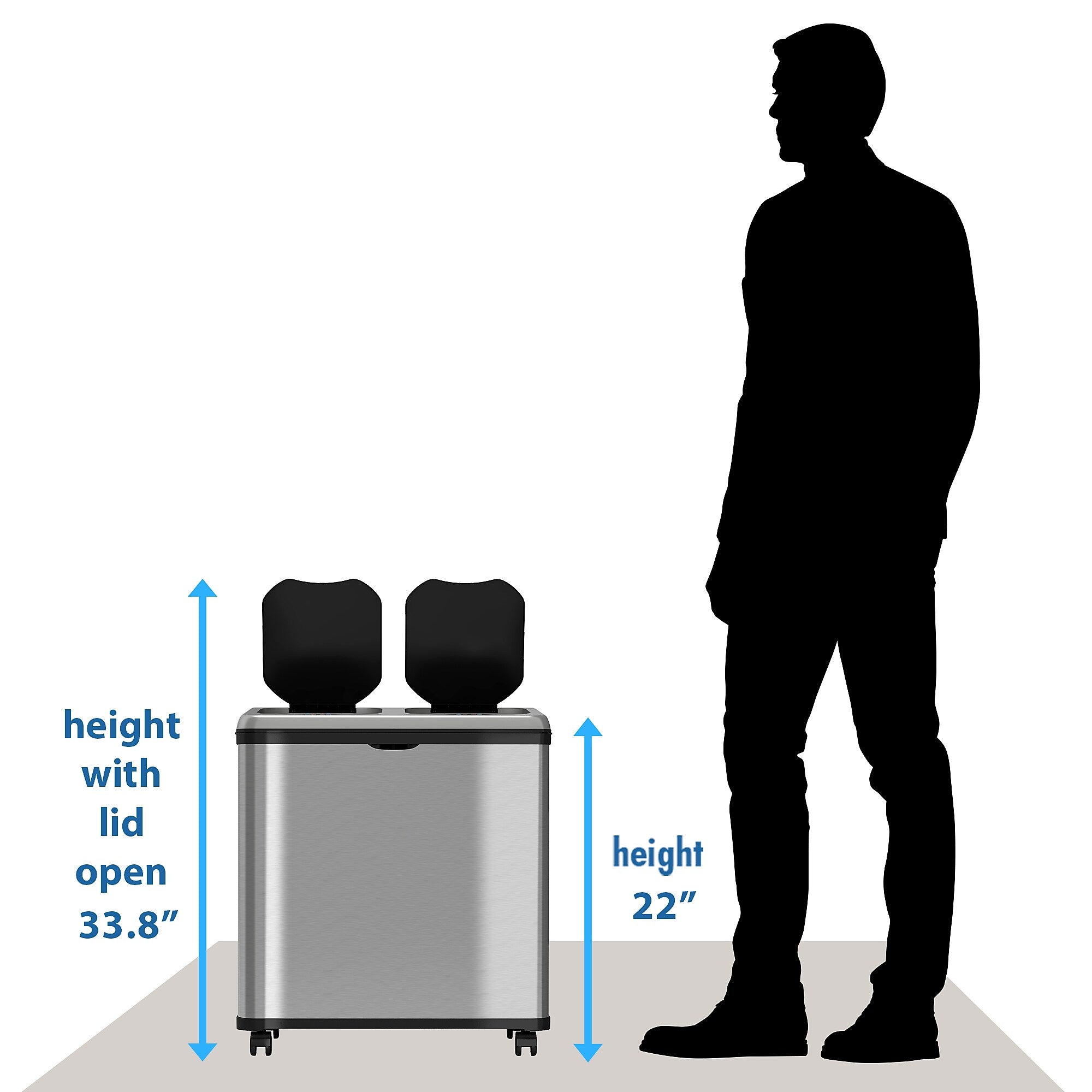 iTouchless Halo Dual Compartment Stainless Steel Sensor Recycle Bin and Trash Can, 16 Gallon (RT16SS)