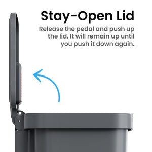 - STEP PEDAL OPERATION – Offers hands-free waste disposal for hygiene-sensitive environments like medical offices, dental clinics, and daycare centers.