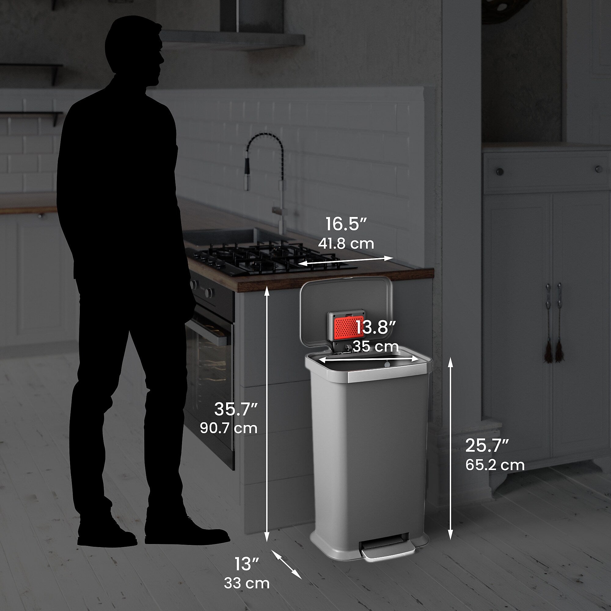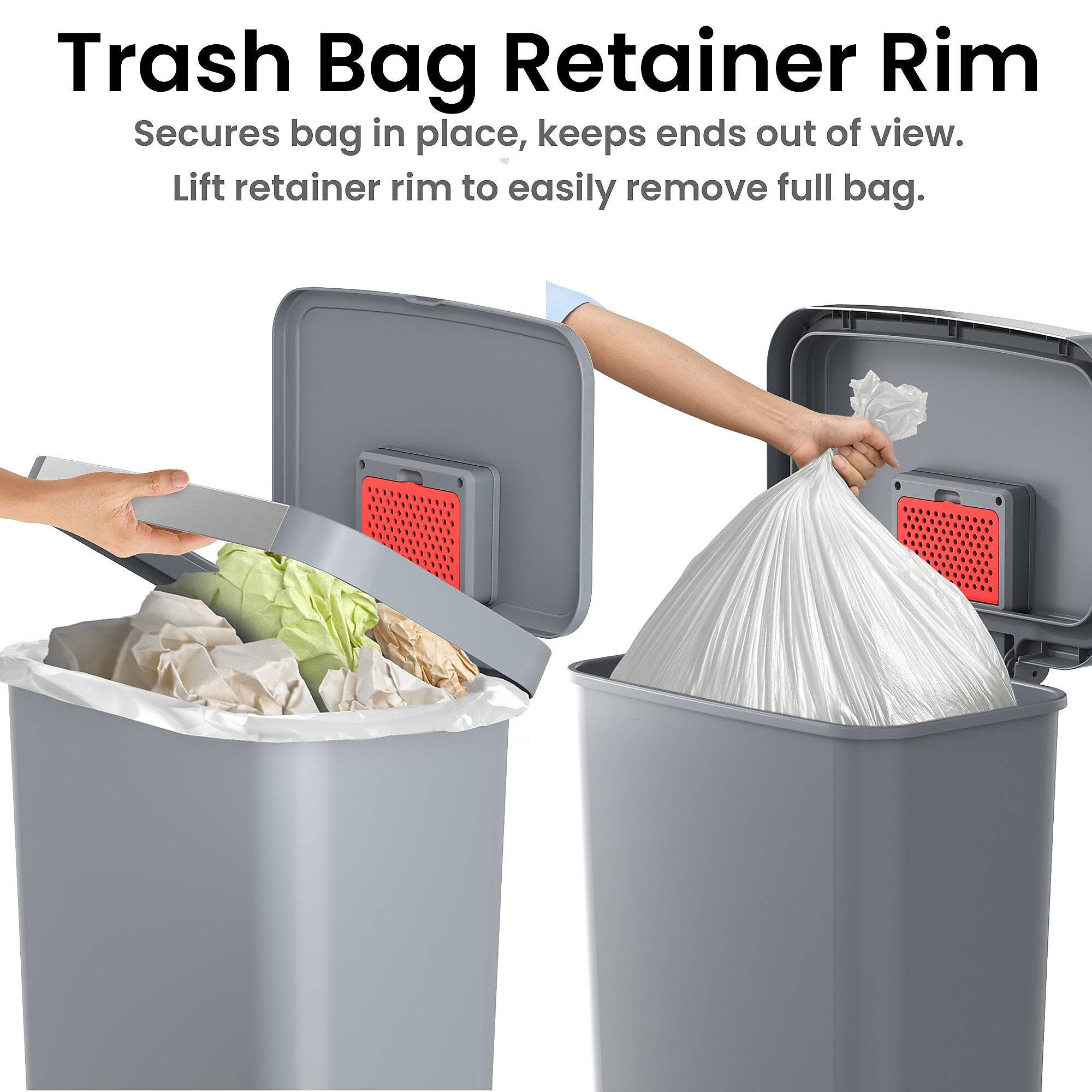 - PREMIUM FEATURES – Includes trash bag retainer ring, fingerprint-proof finish, and built-in deodorizer for daily use.