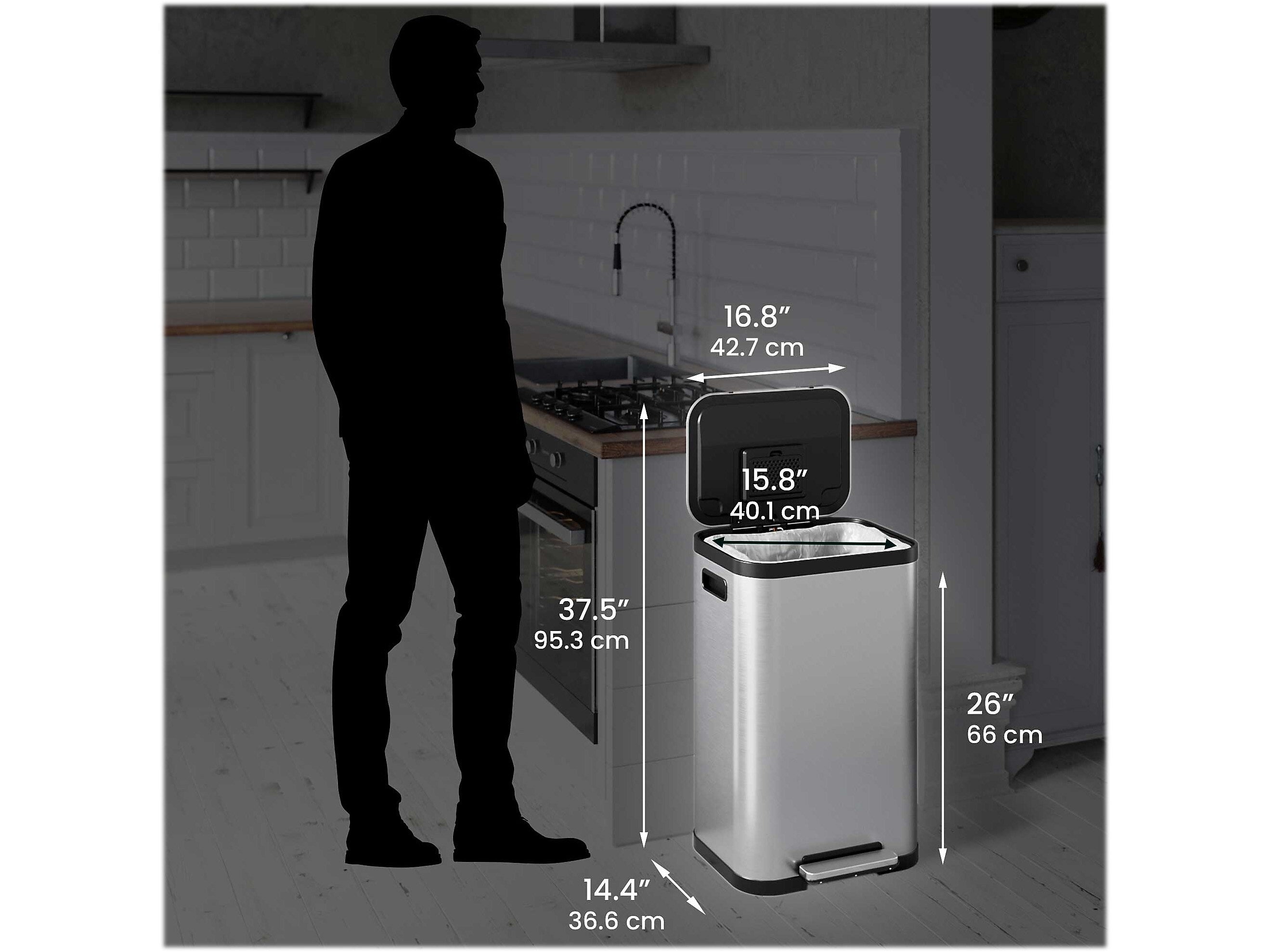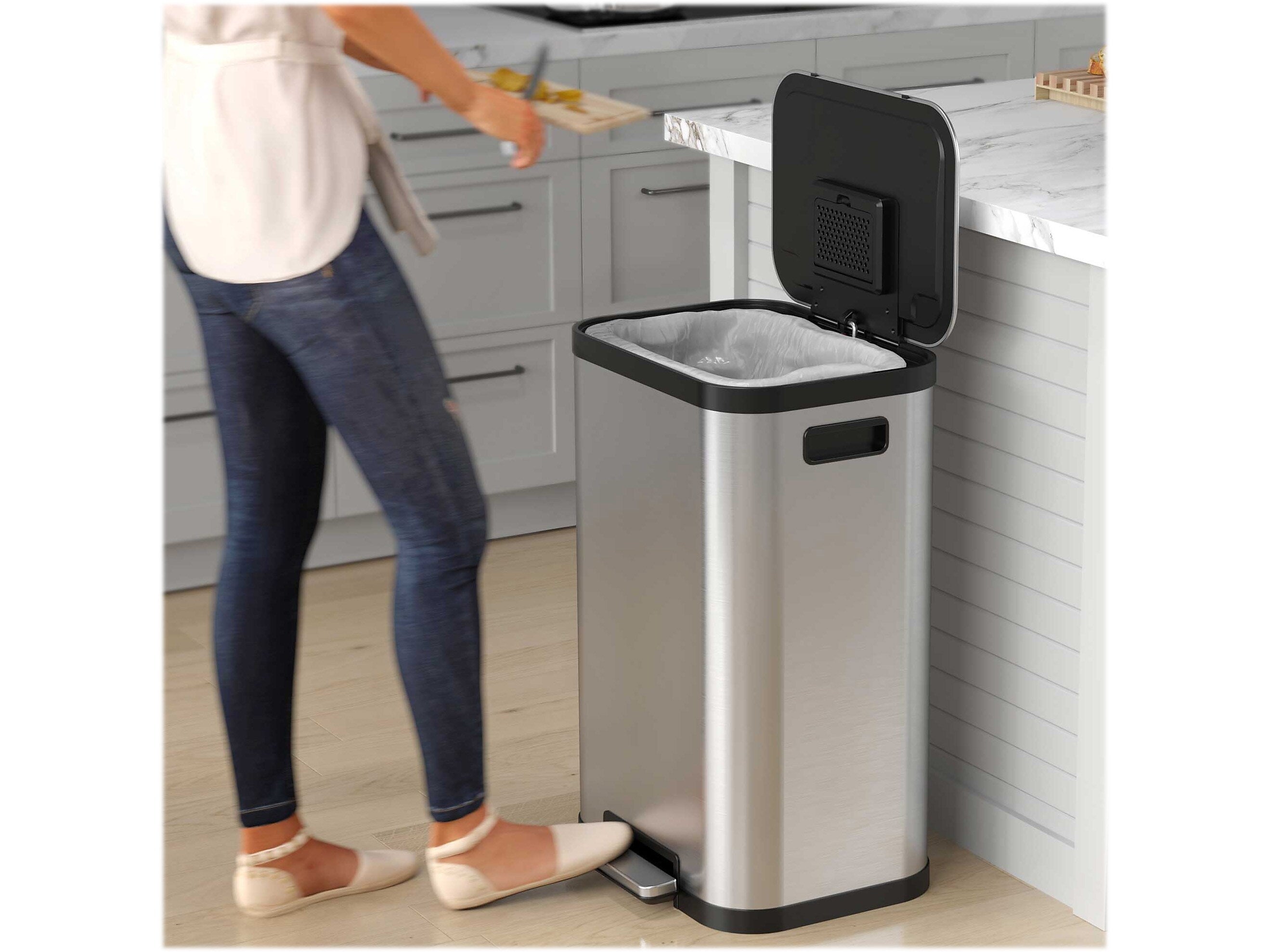 - PREMIUM FEATURES – Includes trash bag retainer ring, fingerprint-proof finish, and built-in deodorizer for high-traffic use.
