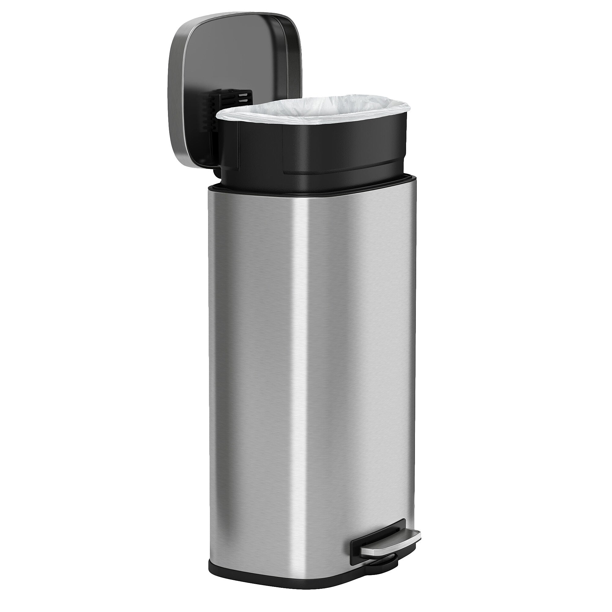 iTouchless SoftStep Stainless Steel Rectangular Step Pedal Trash Can with AbsorbX Odor Control System, 8 Gal., Silver (PC30RSS)