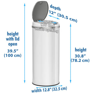 iTouchless Stainless Steel Round Sensor Trash Can with AbsorbX Odor Control System, White, 13 Gal. (MT13RW)