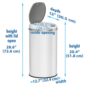iTouchless Stainless Steel Round Sensor Trash Can with AbsorbX Odor Control System, White, 8 Gal. (MT08RW)