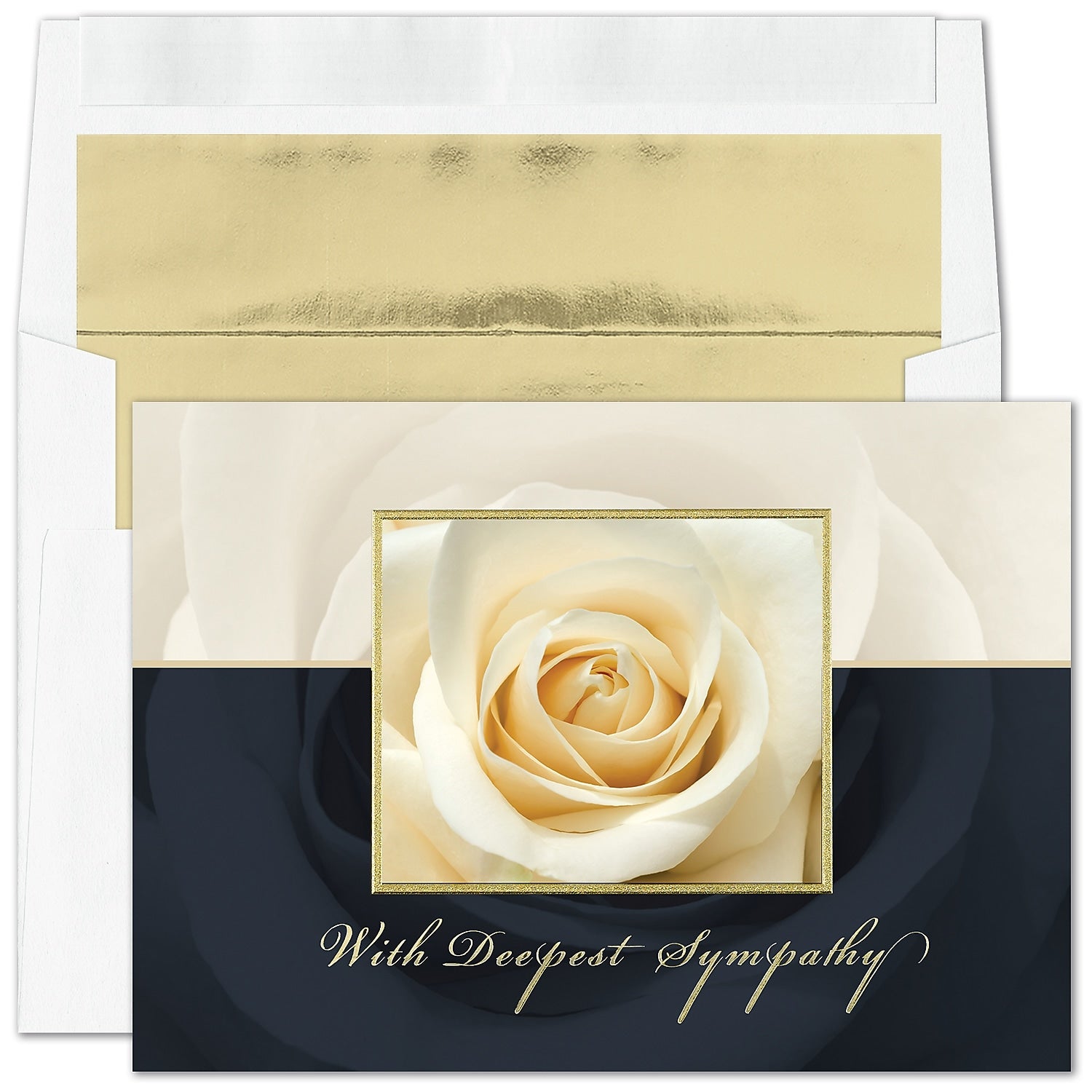 "Ivory Rose" Sympathy Card w/ Gold Lined White Envelope, 25/BX