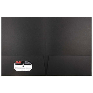 JAM Paper® Black Linen Two Pocket Presentation Folders are made out of durable 30% recycled 100lb cardstock and feature a smooth, linen texture. These folders are sold in packs of 25 and measure 9 x 12 inches in size, making them ideal for standard sized sheets of paper. Each one features two pockets on the inside. Each left side pocket features a 3.5 x 2 inch business card slot. The jet black color and refined quality of these folders gives them a professional appearance that will look from in interviews, offices, academic settings, and more. Use them to store and organize your documents, or to transport them securely from place to place.