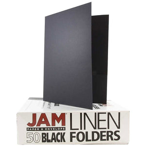 JAM Paper 2-Pocket Textured Linen Business Folders, Black, 25/Pack (386LBLA)