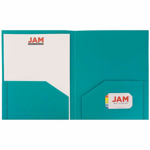 JAM Paper Heavy Duty 2-Pocket Folder, Teal Blue, 6/Pack (383hted)