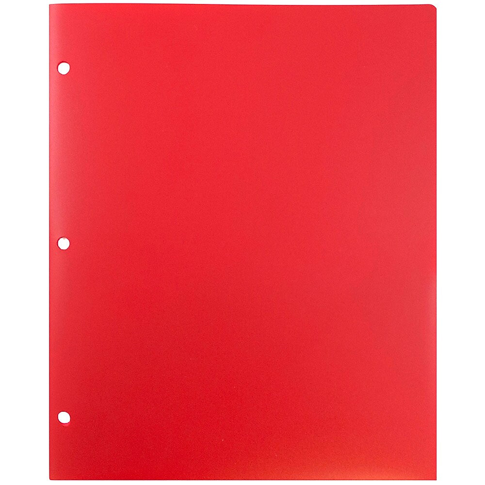 Create files for personal, school or business use with these heavy-duty plastic folders. Each folder includes two inside pockets, allowing you to store documents without punching holes in them. The flexible and durable plastic protects paper from liquids, dirt and other debris and helps prevent creasing. These JAM Paper 3-hole punched folders with two pockets fit easily into any standard binder for safekeeping.