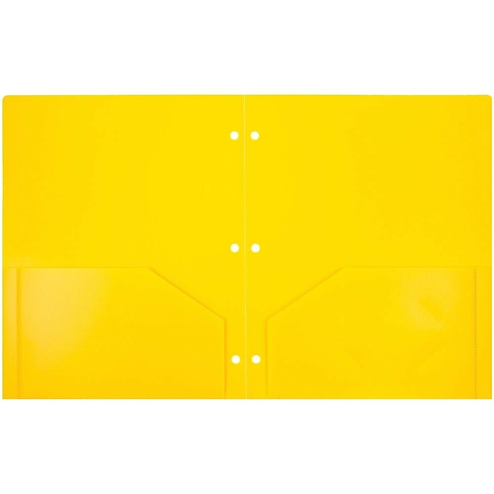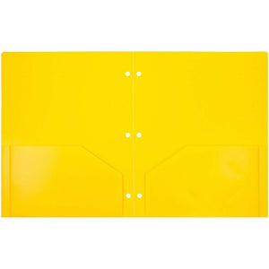 Use JAM Paper® Three Hole Punched Two Pocket Plastic Folders to store, organize and protect all your papers. Made with durable, flexible plastic you can confidently carry presentations, documents, notes, drawings, flyers, standard letter size paper, essays and more from the office or school to home. Easily insert into binders to divide, organize and store contents. Whether you're matching your school or office's theme or are color-coding to make finding your documents simple, these folders are the perfect option for you! This pack includes 12 assorted primary color folders (Red, Blue, Green, Yellow, Purple, Orange). Each folder measures 9 1/2"" x 11 5/8"", has two pockets and a business card place holder. Size: 9.5in x 11.625in | Color: Assorted Fashion | Quantity: 12/pack