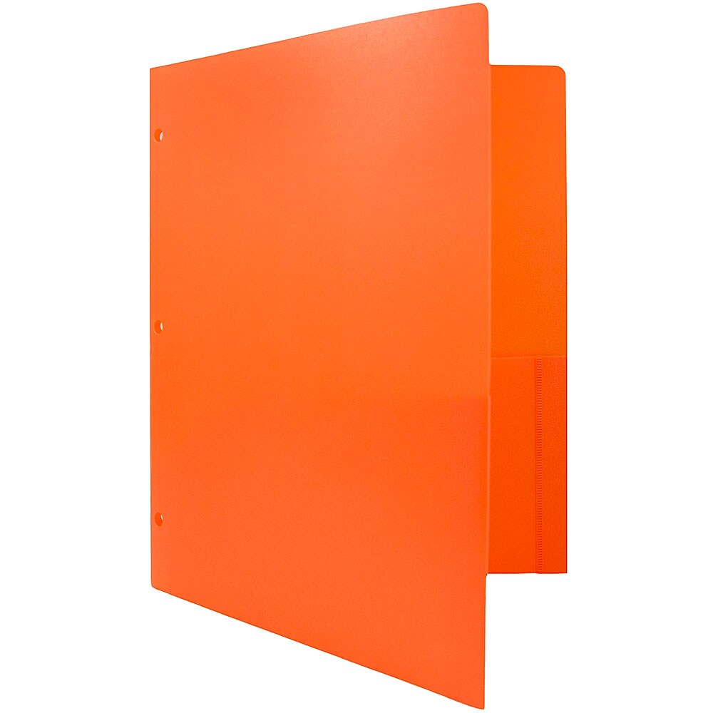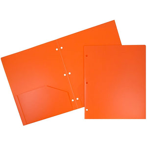 JAM Paper® Plastic Two Pocket 3 Hole Punched Presentation School Folders are sold in packs of 6 and are made of heavy-duty plastic. Excellent for standard sized documents, each one measures 9 x 12 inches in size and has two inner pockets. These pockets are located on the bottom with one on each side. The right-hand-side pocket features a four-cornered business card slot within its surface. Along the vertical left edge of each folder, there are three punched holes for placing them into 3-ring-binders. Show your personality with these vividly colored carrot orange binders. Use them to organize your important documents and to stand out from the crowd.