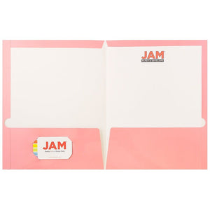 JAM Paper Laminated 2-Pocket Glossy Presentation Folders, Baby Pink, 25/Pack (31225348a)