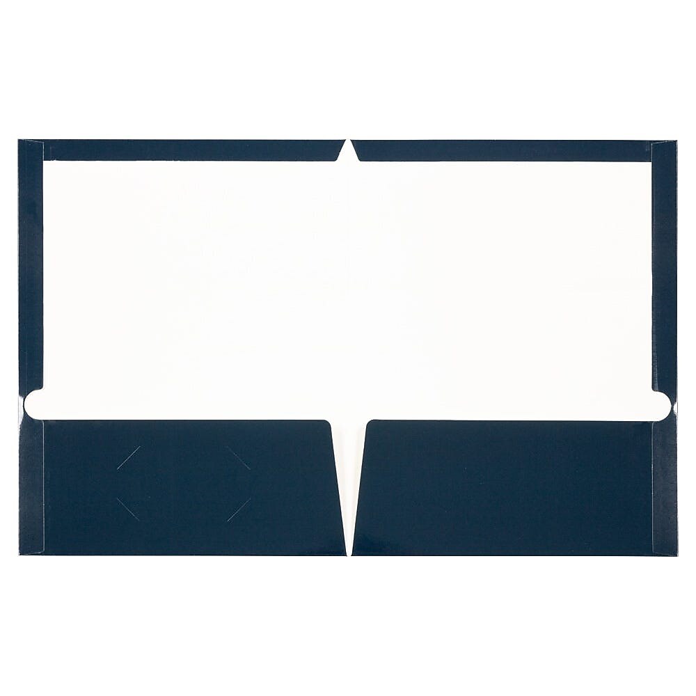 JAM Paper Laminated Two Glossy 2 Pocket Cardstock Presentation Folder, Navy Blue, 50/Box (5042523C)