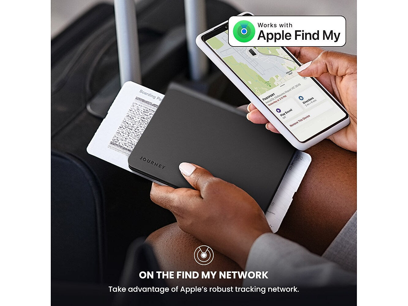 The JOURNEY LOC8 passport holder with tracker is your ticket to stress-free travel. With a built-in tracker compatible with Apple's Find My network, your passport is always within reach. Never worry about misplacing it again. Slim and stylish, this passport holder securely holds up to two passports, multiple boarding passes, five credit cards, and even has a pocket for your cash. Elevate your journey with peace of mind and practicality, a perfect companion for the modern traveler.