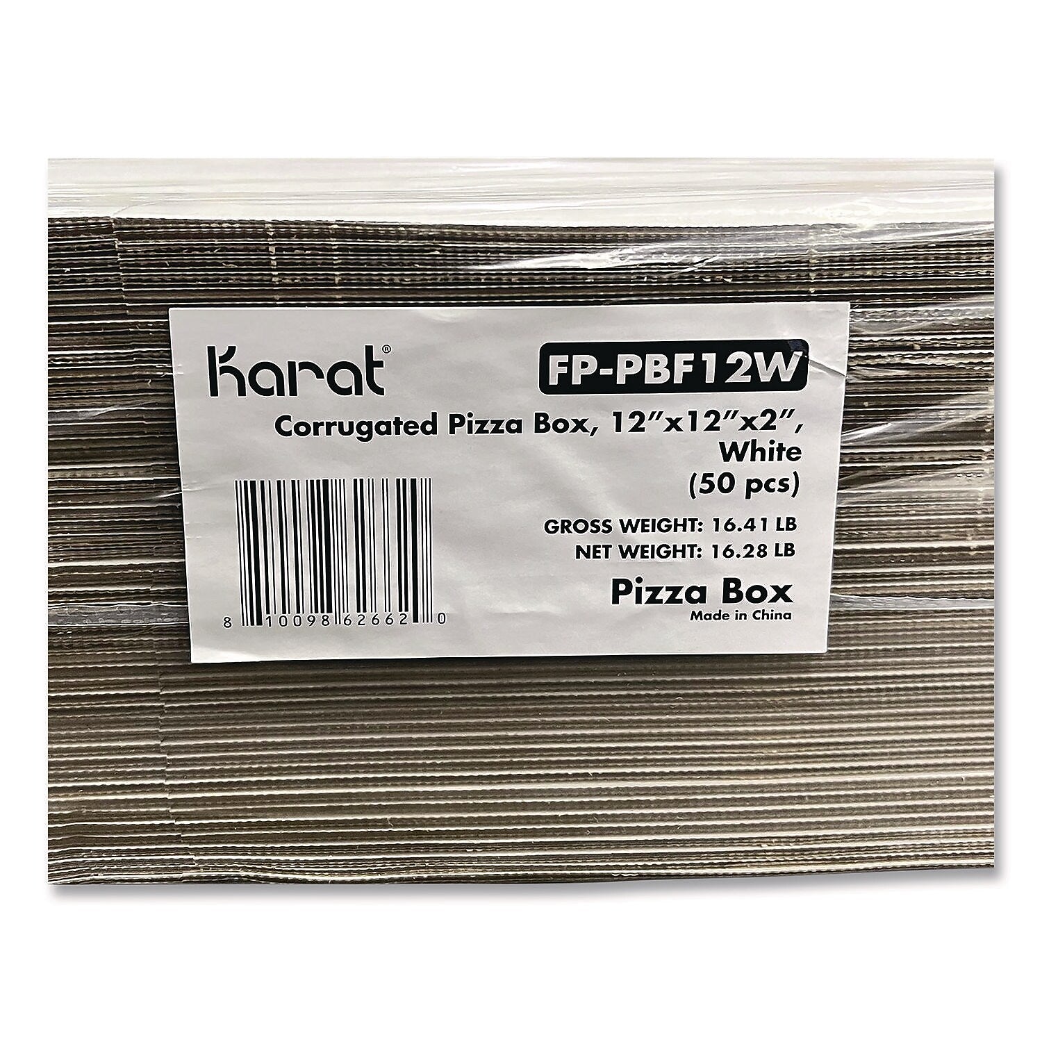 Karat Home Pizza Boxes, 12" x 12" x 1.97", 50/Carton (FP-PBF12W)