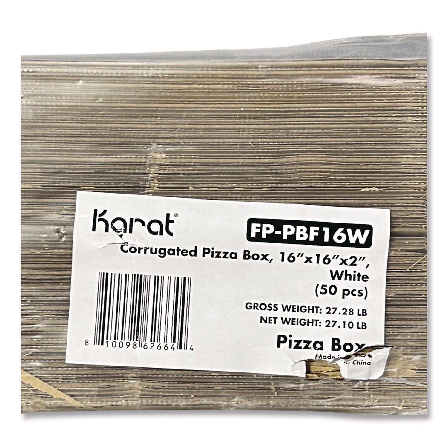 Karat Home Pizza Boxes, 16" x 16" x 1.97", 50/Carton (FP-PBF16W)