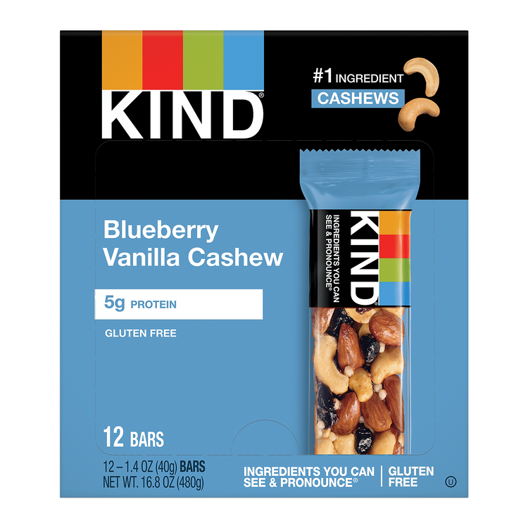 KIND Gluten Free Blueberry Vanilla Cashew Nut Bar, 12 Bars/Box (PHW18039)