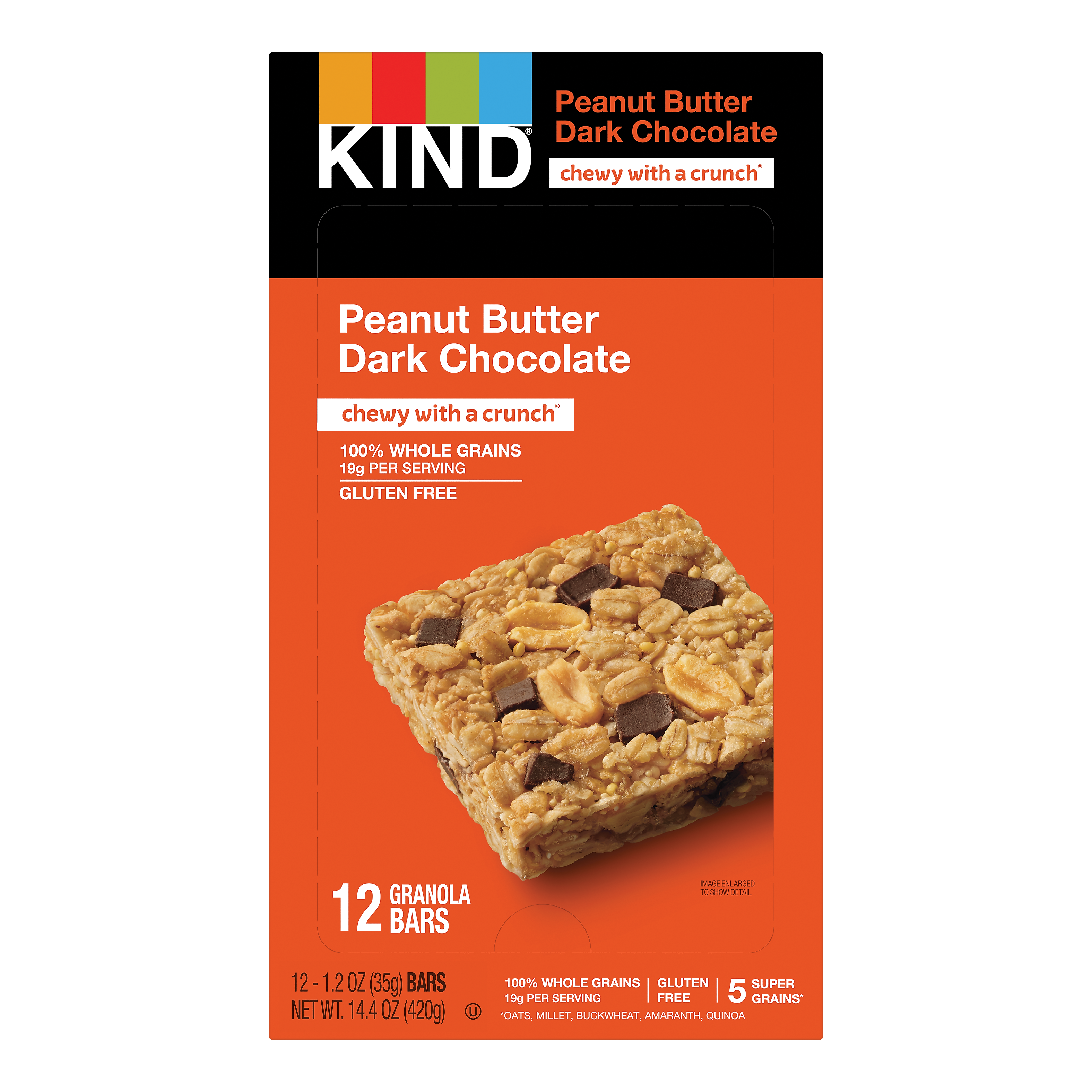 KIND Healthy Grains Gluten Free Peanut Butter Dark Chocolate Nut Bar, 12 Bars/Box (PHW18083)