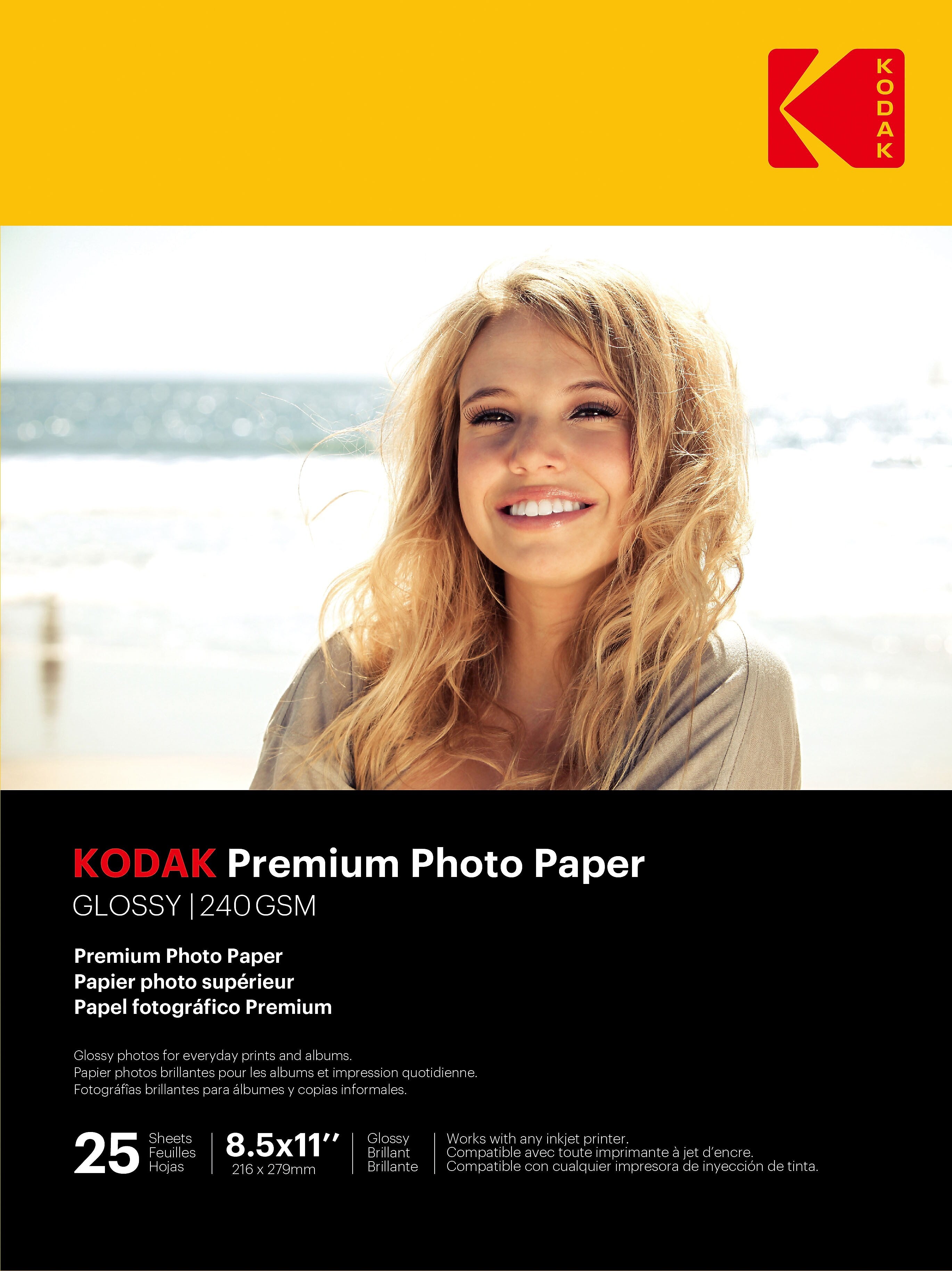 Kodak Premium Photo Paper Glossy Photo Paper, 8.5" x 11", 25 Sheets/Pack (41173)