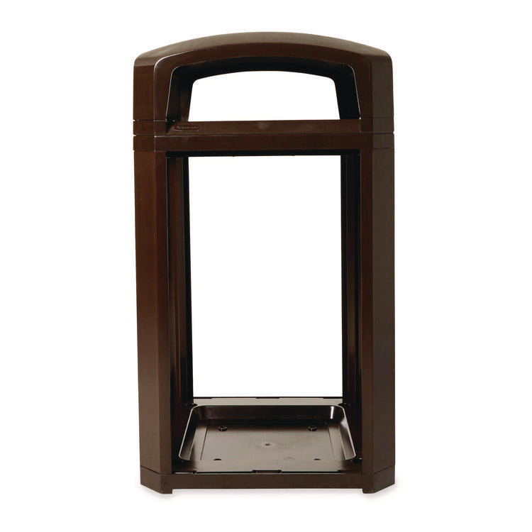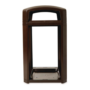 All-weather, dome top waste receptacle provides convenient access from all sides. Hinged cover makes trash removal a snap. Rain cap minimizes exposure to wind, rain and snow; prevents light refuse from blowing away. Dome top/frame and aggregate panel kit sold separately—ORDER BOTH.
