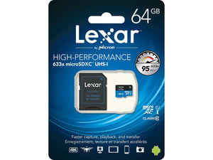 Lexar High-Performance 633x 64GB microSDXC Memory Card with Adapter, Class 10, UHS-I (LSDMI64GBBNL633)